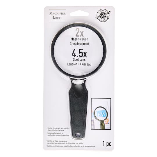 Purchase the 2x to 4.5x Bifocal Lens Hand Magnifier by Loops & Threads at Michaels. This magnifier has a top mount thumb rest which promotes a more natural hand position and creates balanced weight di…