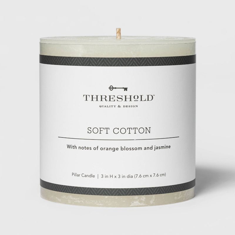 Bring home the soothing aroma of cotton with this Pillar Candle Soft Cotton White from Threshold™. With its cotton fragrance and simple but soft look, this candle is sure to give any room a calming am…