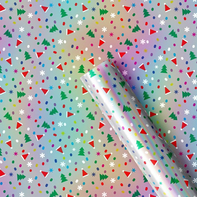 30" 90 sq ft Christmas Roll Wrap Santa Hats/Trees on Multi Color - Wondershop™
