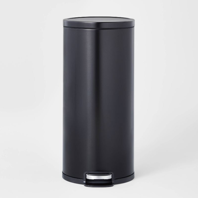 30L Round Step Trash Can Black - Brightroom™: Stainless Steel Kitchen Trash Bin, Smooth Finish, Indoor Use