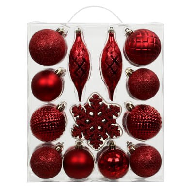 34 Pack Ball, Finial, & Snowflake Shatterproof Ornaments By Ashland