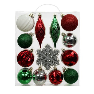 34 Pack Red, Green & Silver Shatterproof Ornaments By Ashland
