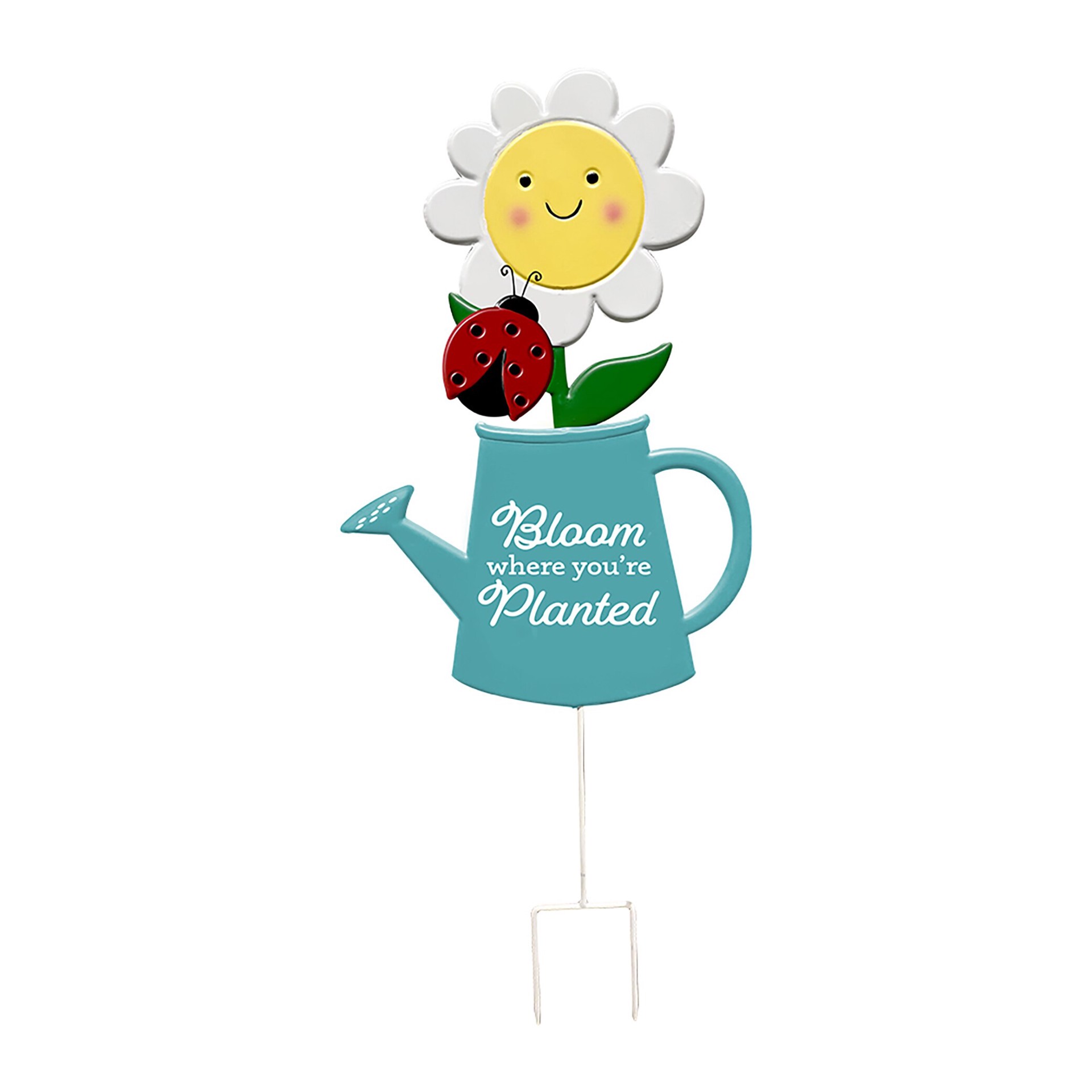Made from 100% metal. Sturdy stake to secure into ground for outdoor use. Easy care-just wipe clean.