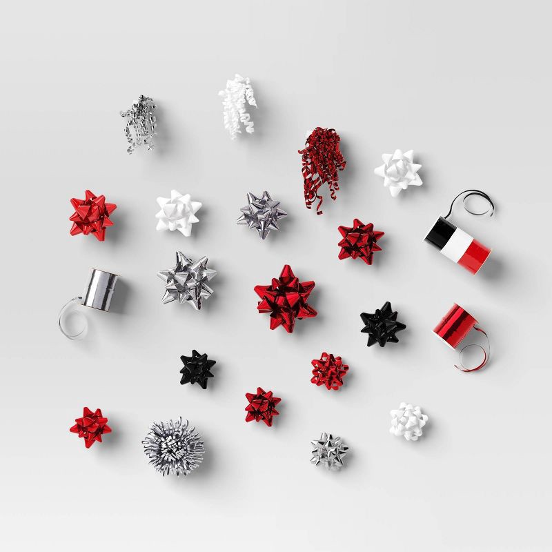 36ct Christmas Bows and Curling Ribbon Kit Silver/Red/White/Black - Wondershop™