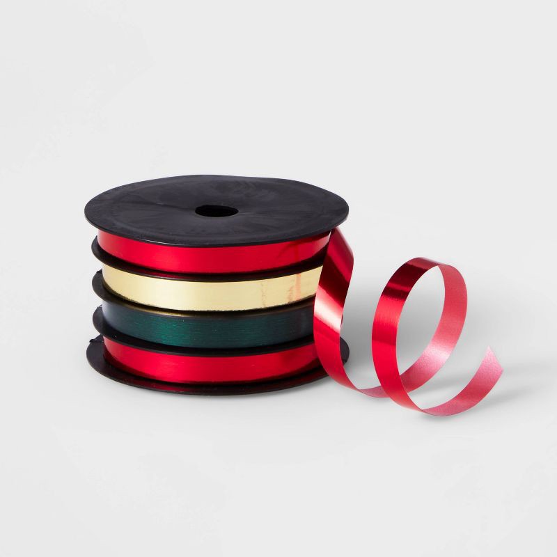 Bring festive flair to your holiday supplies with the 3-Pack Christmas Curl Ribbon from Wondershop™. This decorative set includes three ribbons in assorted colors, adding variety to your holiday gift …