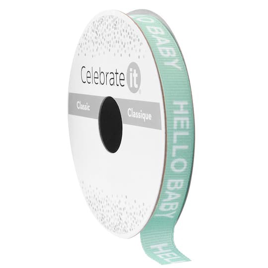 Shop for this 3/8" x 7yd. Sage Hello Baby Grosgrain Ribbon by Celebrate It Classic at Michaels. Featuring a white "HELLO BABY" message on a soft green background, it's perfect for embellishing baby sh…