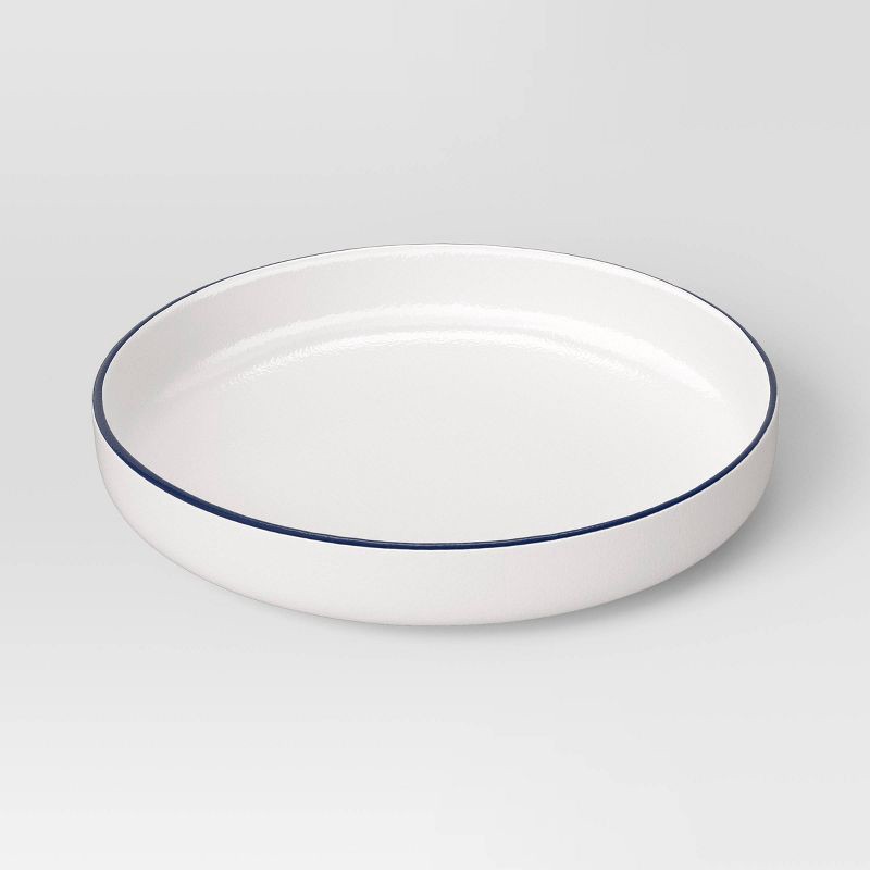 Give a boost of style to your dinnerware with the Stoneware Dinner Bowl Blue Rim from Threshold™. This white dinner bowl features a blue rim for an eye-catching contrast you'll love. Made of stoneware…