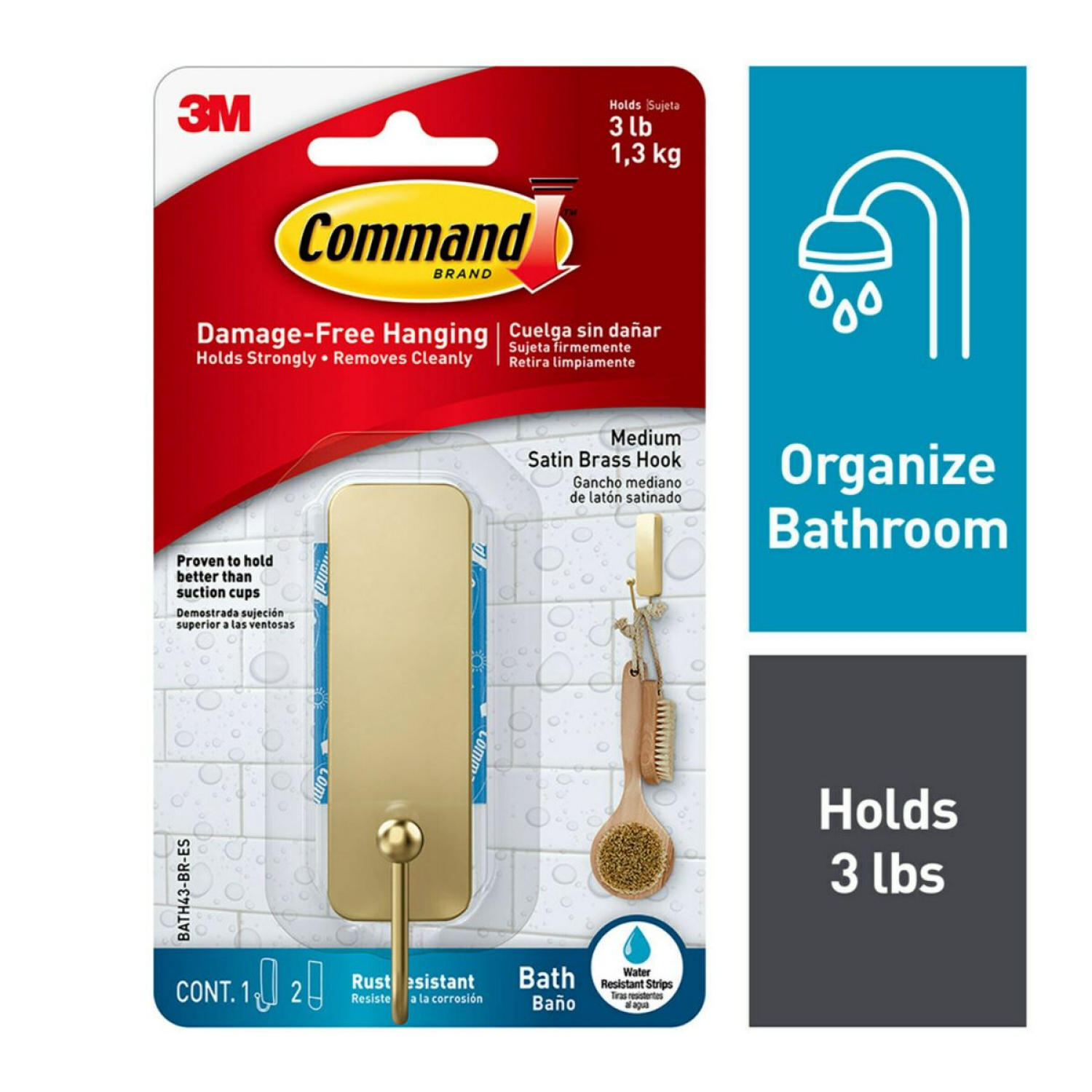 3M Command Bath Hook Medium Satin Brass, 1 ct.