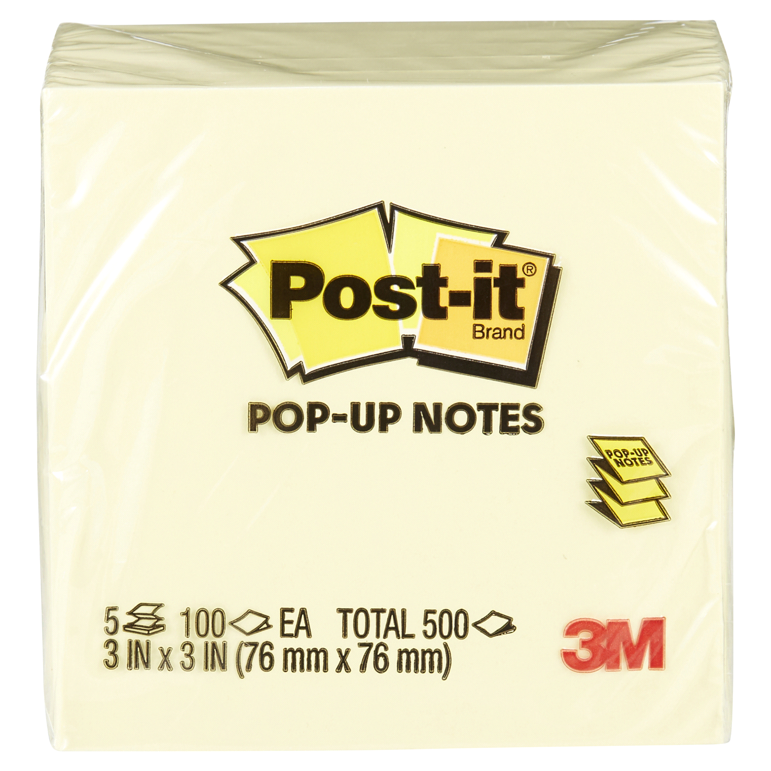 3M Post-it Pop-up Notes, 3 in x 3 in, Canary Yellow, 5 Pads/Pack