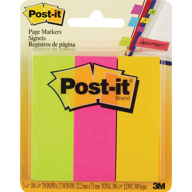slide 1 of 1, 3M POST IT Poste It Note Pad Package Marker Neon, 100 ct
