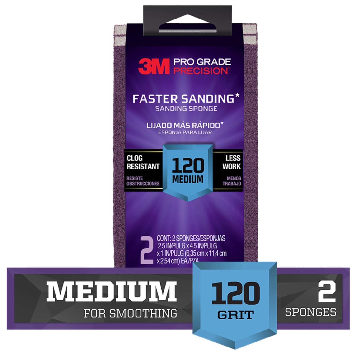 3M PRO Grade Precision Medium 120-Grit Sanding sponge 1-in x 2.5-in 2 -Pack