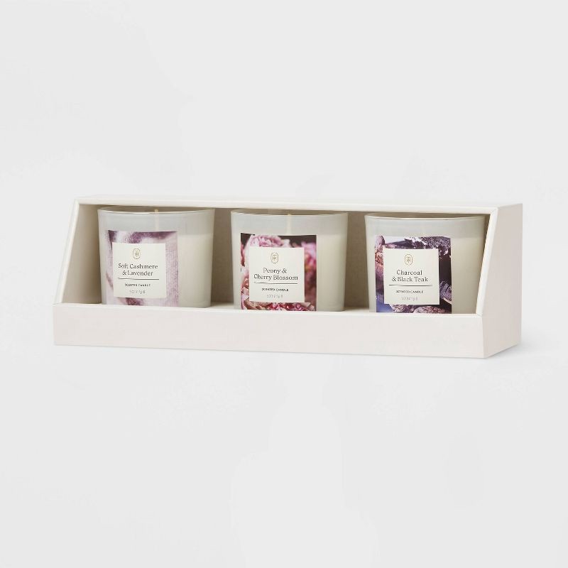 Delight your loved ones with the 3pk Milky Glass Everyday Fragrances Candle Gift Set Jar Candle from Threshold™. Featuring a luxurious blend of scents, including charcoal, lavender, teakwood, peony an…