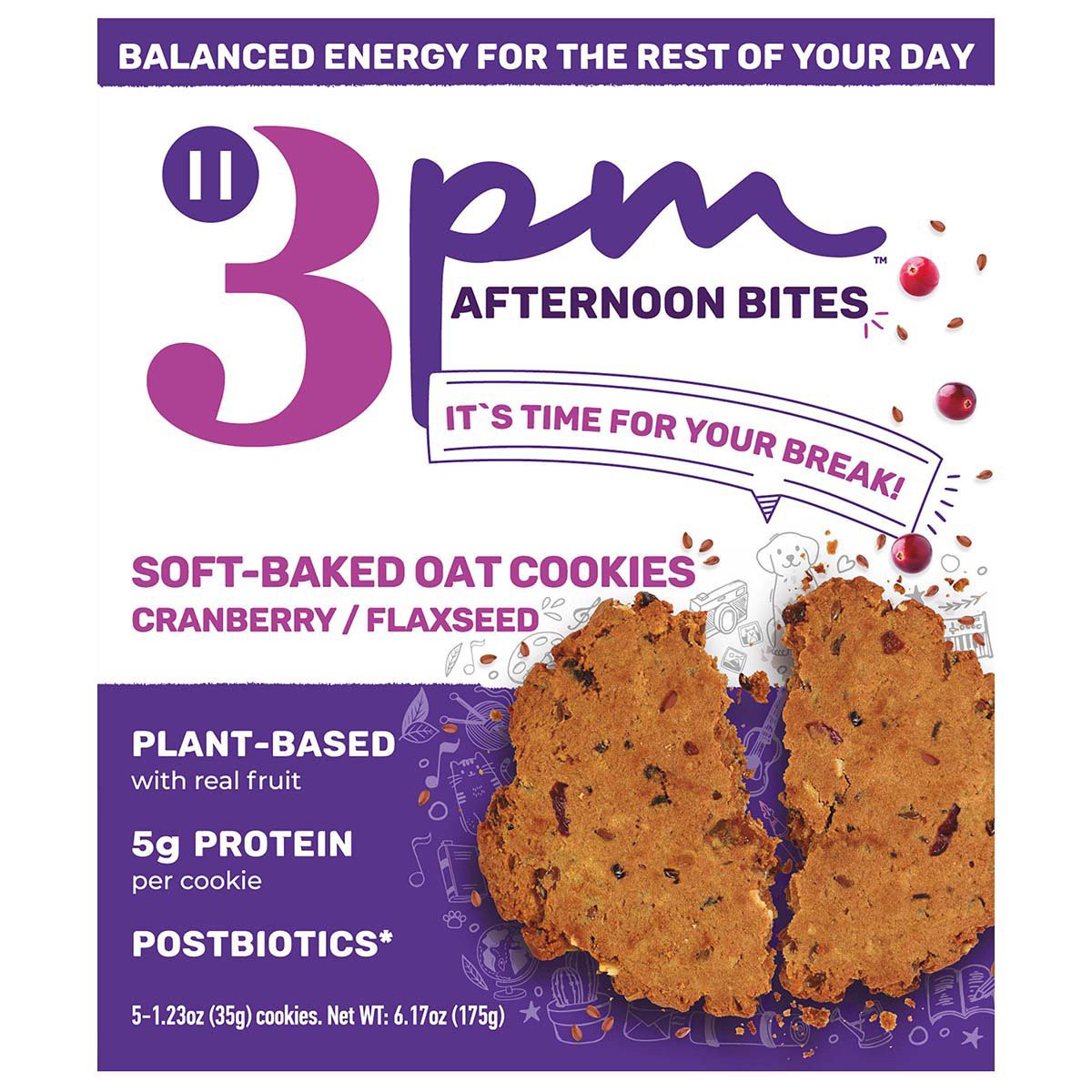 3PM Afternoon Bites Soft-Baked Oat Cookies - Cranberry Flaxseed