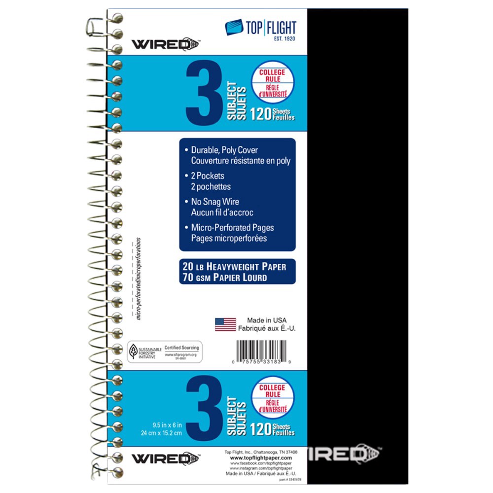 Wired 3 Subject Notebook, 9.5 x 6.5 size