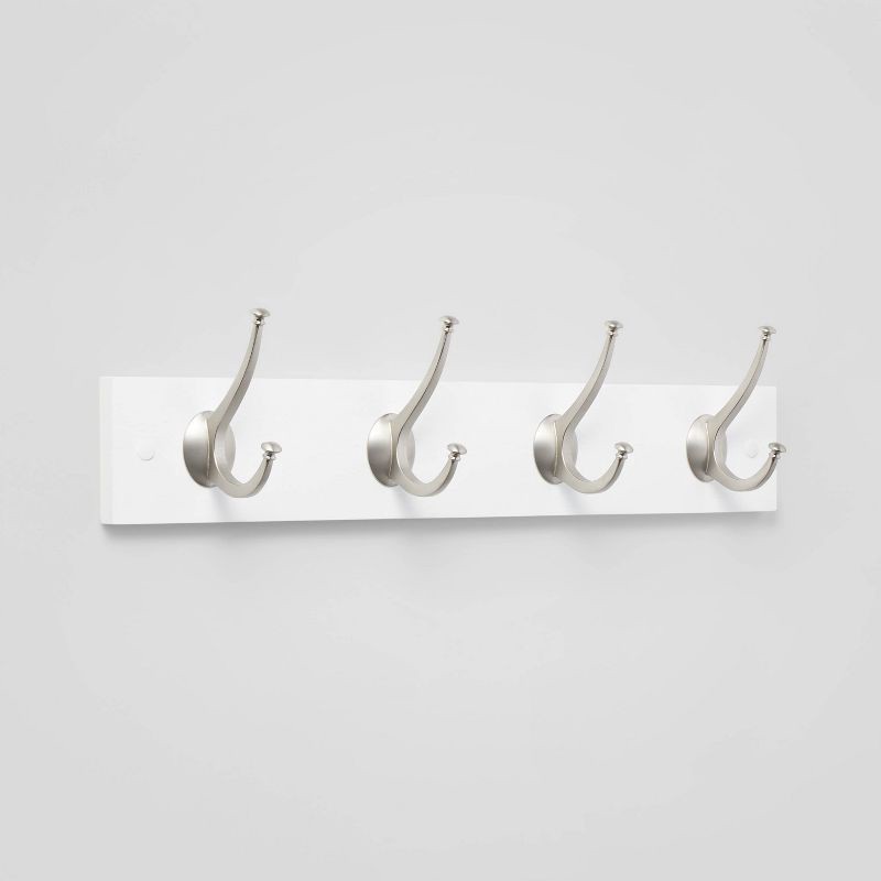 4 Hooks Rail Nickel Hooks Ivory - Threshold™: Wall Mounted Decorative Hook Rack, Matte Silver, No Assembly Required