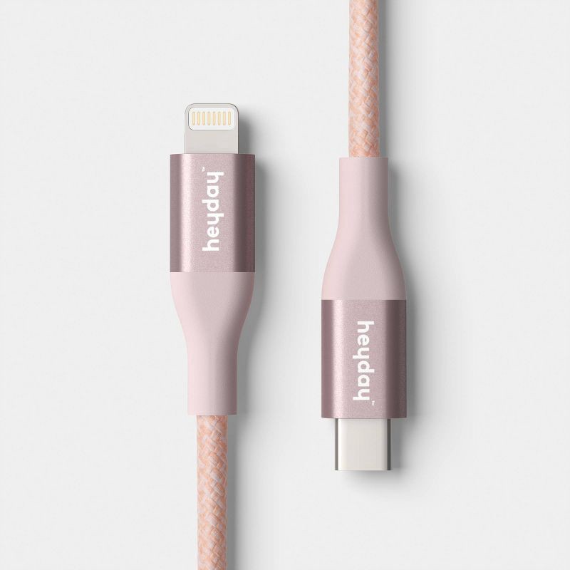 The 4ft USB-C to Lightning Braided Cable from heyday™ in Cosmetic Pink offers a reliable connection for your devices. With a length of 4 feet, this cable provides ample reach for charging and data tra…