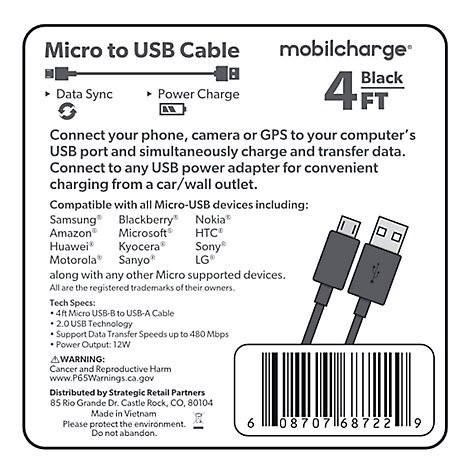 slide 1 of 1, 4ftmicrosyncchargecableunpkg-black - Each, 1 ct