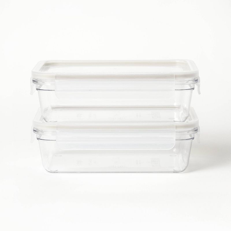 4pc (set of 2) 5.5 Cup Tritan Plastic Rectangle Food Storage Container Set Clear - Figmint™: Stackable Design