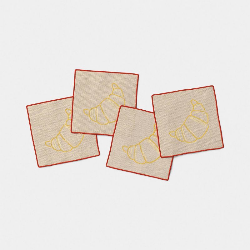 4pk Croissant Embroidered Cocktail Napkins - Room Essentials™