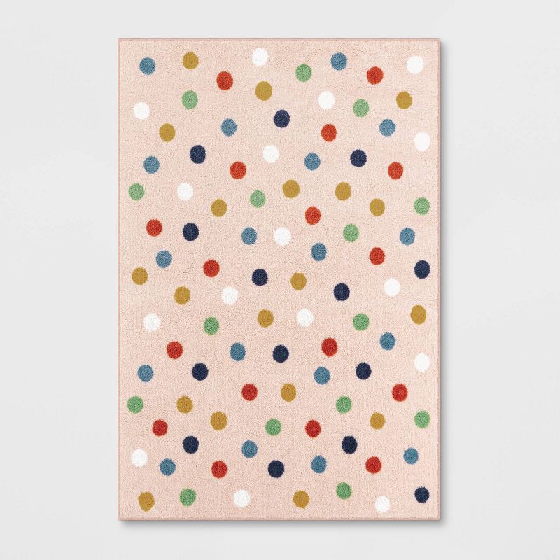 4'x5'6" Multi Dot Kids' Rug Pink - Pillowfort™: Tufted Polka Dot Accent for Kids Room, OEKO-TEX Certified