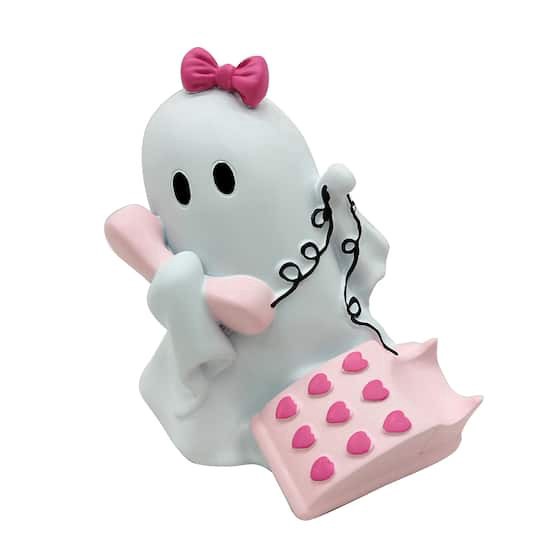 Find the 5" Ghost with Telephone Tabletop Decor by Ashland at Michaels. All done up with a cute little bow, this ghost is enjoying some much needed chit chat with a friend on its pretty pink phone. Pa…