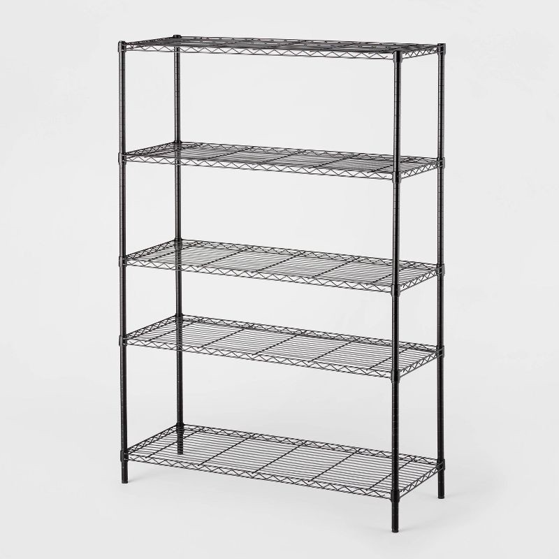 5 Tier Wide Wire Shelving Black - Brightroom™: Adjustable Metal Storage Unit, 72.63" H, 350 lb Capacity, 5 Shelves