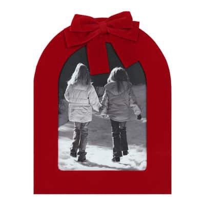 Buy the 5" x 7" Velvet Arch with Bow Frame by Studio Decor at Michaels. Display a treasured family photo or drawing on your wall paired with other photos and a pair of candle holders to bring the Chri…