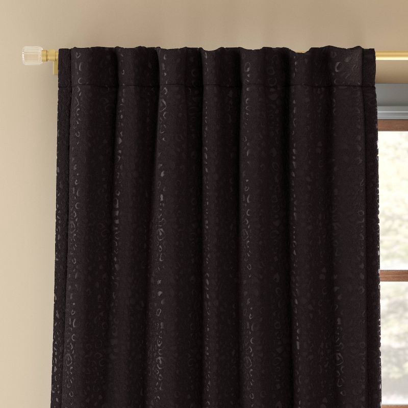 This Blackout Embossed Cheetah Patterned Velvet Curtain Panel from Threshold™ is an elegant way to darken any room. Made from knit fabric with an embossed cheetah pattern and velvet finish for an eleg…