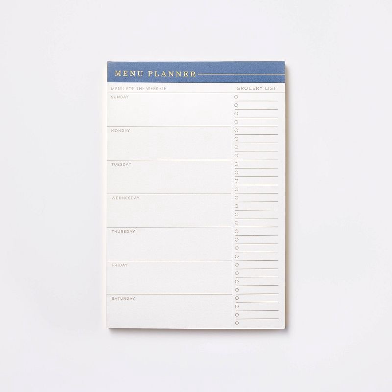 Plan your meals and grocery for the week in advance with this 52-Page Special Rule Undated Weekly Menu Planner from Threshold™. This weekly menu planner features a blue top and Sunday till Saturday me…