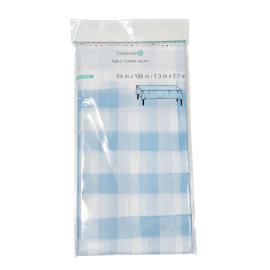Purchase this 54" x 108" Blue Gingham Plastic Table Cover by Celebrate It at Michaels. Protect your table's surface at any celebration with this fun table cover. This plastic table cover with a blue a…