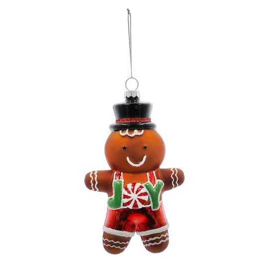 Buy the 5.5" Gingerbread Joy Glass Ornament by Ashland at Michaels. Featuring a gingerbread man shape with peppermint and glitter accents, this piece will be right at home hanging from your tree or ma…