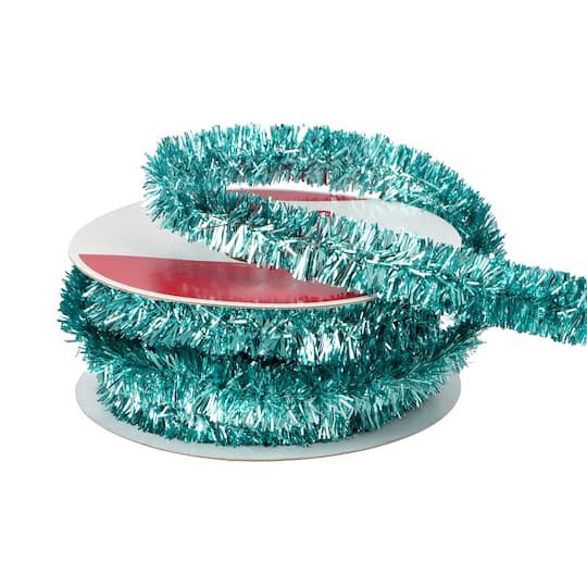 Shop for this 5/8" x 30ft. Turquoise Tinsel Wired Trim Ribbon by Celebrate It at Michaels. The sparkly Christmas ribbon has a fun blue tinsel texture, and the wired base is perfect for adding structur…