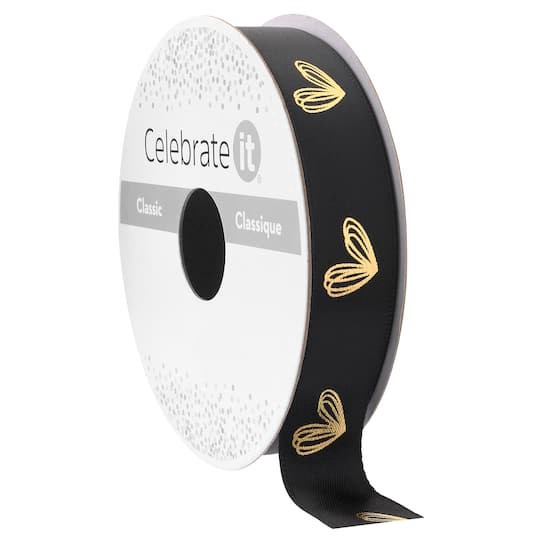 Buy the 5/8" x 7yd. Black & Gold Heart Ribbon by Celebrate It Classic at Michaels. This pretty ribbon is perfect for adding a charming vibe to your projects. Black and gold colored. 5/8" x 7yd. (1.588…