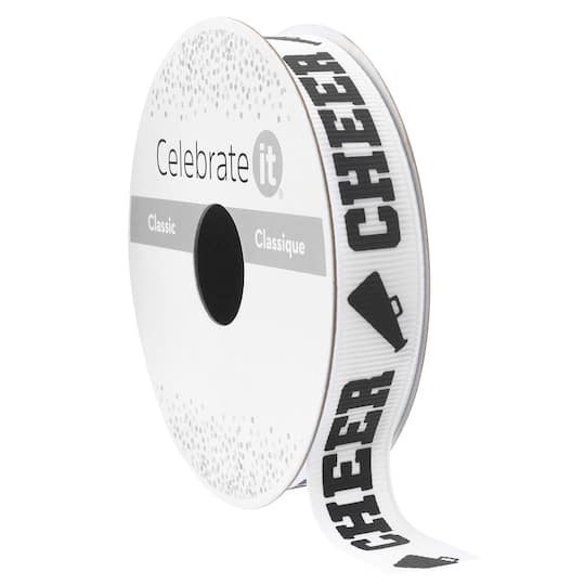 Buy the 5/8" x 7yd. Cheer Ribbon by Celebrate It Classic at Michaels. This "cheer" ribbon is perfect for adding a fun touch to your projects. White and black. 5/8" x 7yd. (1.58cm x 6.4m). Non-wired, w…
