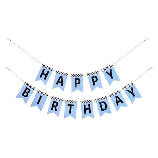 Buy the 5ft. Blue Happy Birthday Racing Banner Set by Celebrate It at Michaels. Featuring a blue checkered flag design, pair with a racecar cake, miniature cars and sparkling candles for your racing e…