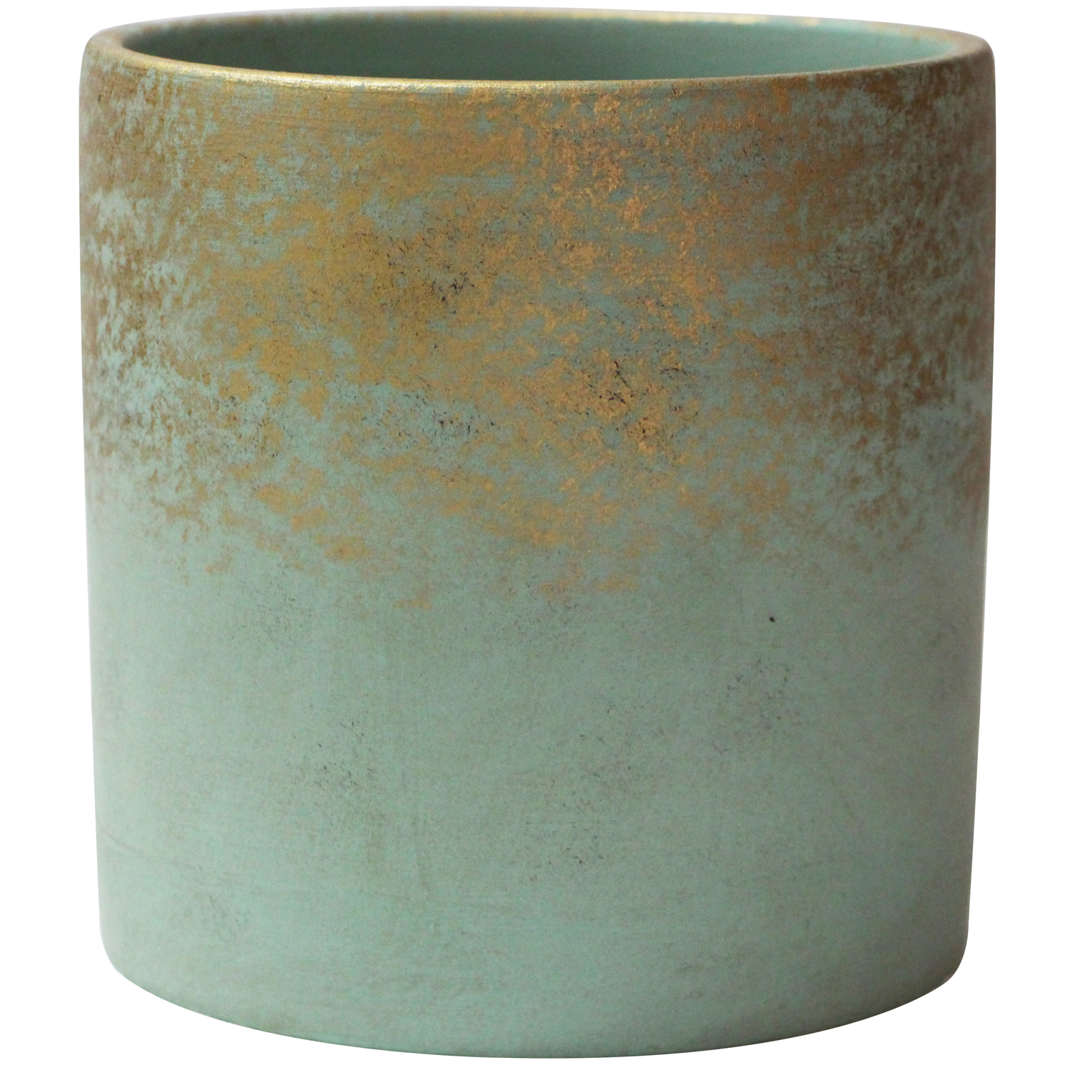 Plants are a wonderful addition to any room. The 5in Cylinder Ceramic Planter in green with gold metallic accent is the perfect home for a new houseplant. Clean lines and artisanal pairing of matte gr…