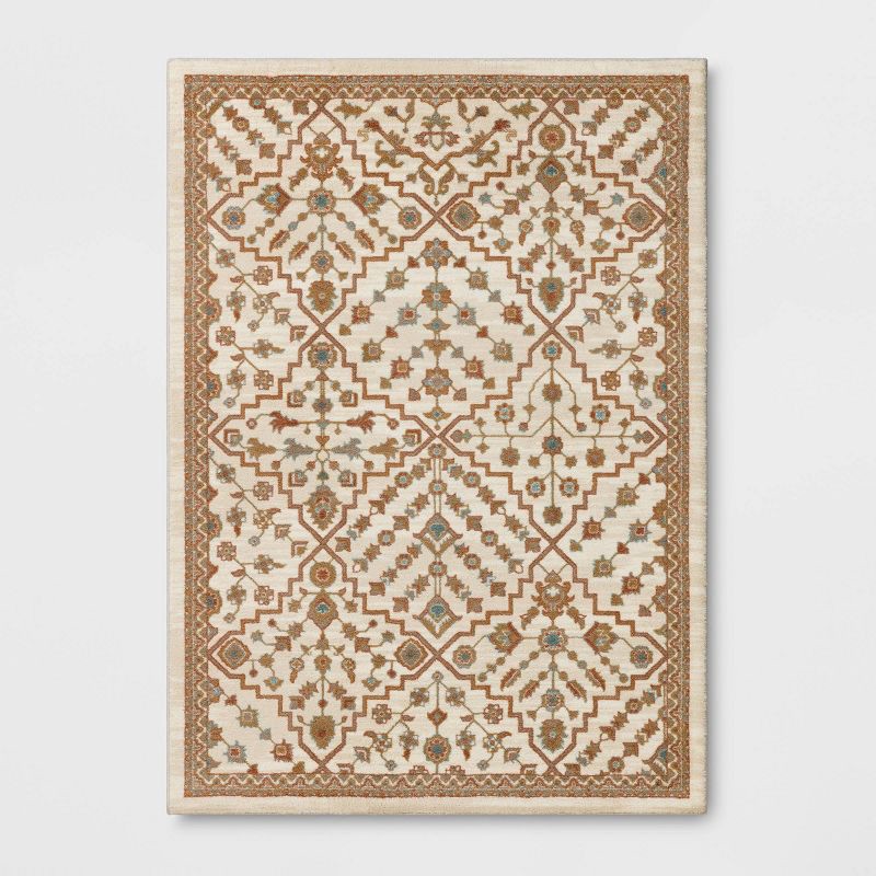 Add timeless elegance to your space with this Persian Accent Rug from Threshold™. This traditional-style rug showcases an intricate Persian-inspired floral and geometric pattern with a border in tan a…