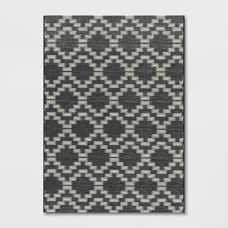Add some artistic elegance to your outdoor decor with this Tapestry Outdoor Rug from Threshold™. This woven rug is adorned with a seamless design of intricate trellis-like geometrical patterns for a s…