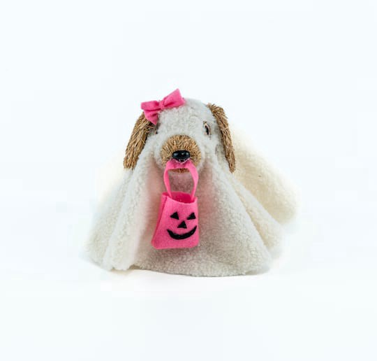 Buy the 6" Lady Ghost Dog by Ashland at Michaels. Decorate your home for Halloween with this adorable ghost dog featuring a pink jack-o-lantern trick-or-treat bag, a sherpa-style ghost costume and a c…