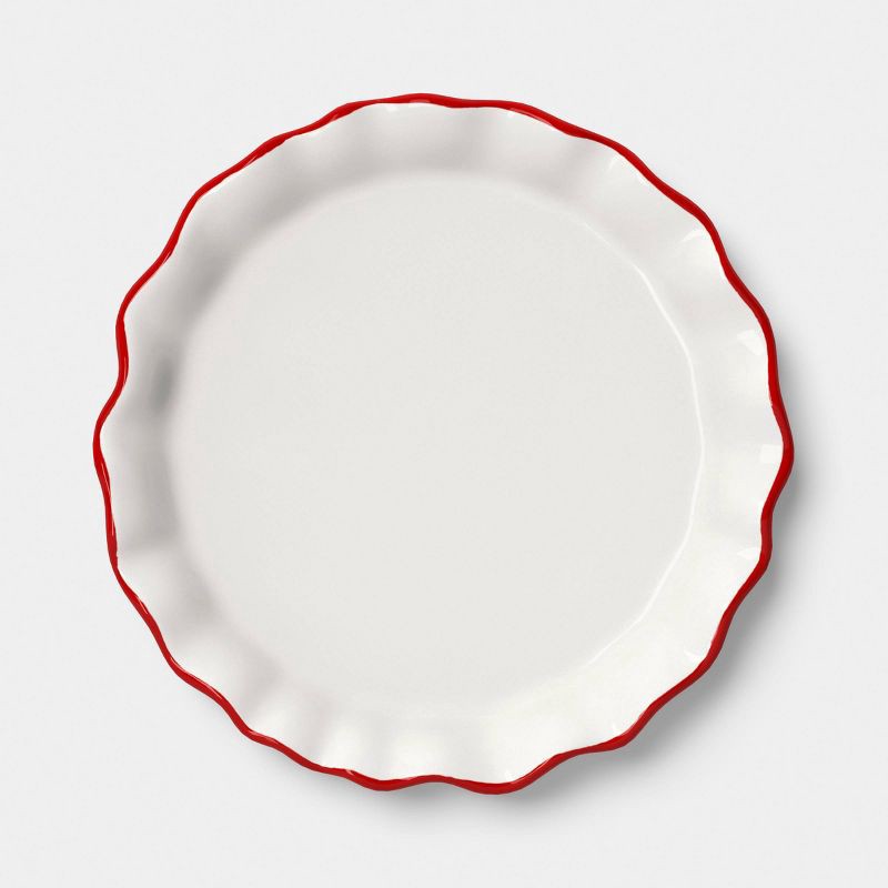Upgrade your serveware with this Valentine's Stoneware Appetizer Plate from Threshold™. Made of stoneware, this round plate in a white hue features a scalloped edge with a red rim, making it perfect f…