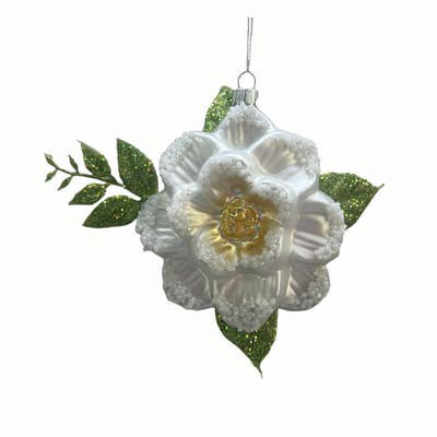 6.25" White Camellia Flower Glass Ornament By Ashland