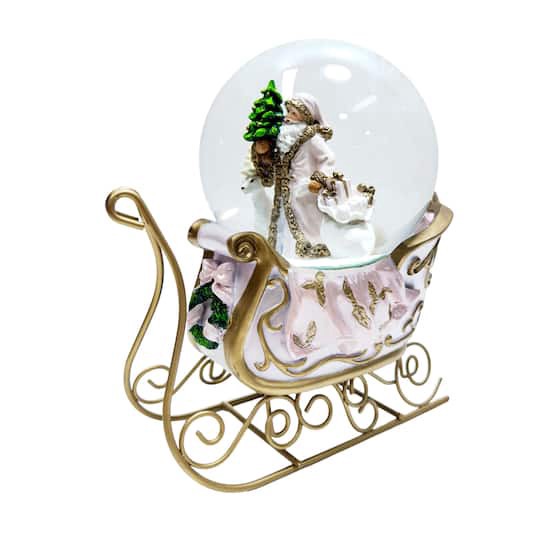 Find this 6.5" Santa Sleigh Fairytale Waterglobe by Ashland at Michaels. This intricately designed piece has a pink and gold sled base holding a snowglobe with Santa holding a tree and bag of gifts. P…