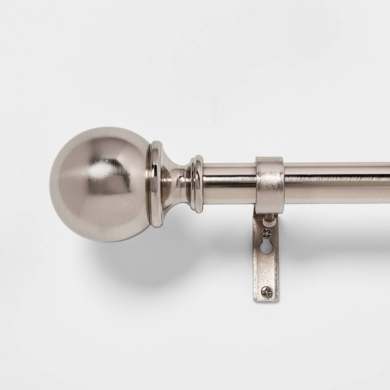 66"-120" Ball Curtain Rod Brushed Nickel - Threshold™: Adjustable Metal, Single Rod, Silver Finish, 30lb Capacity