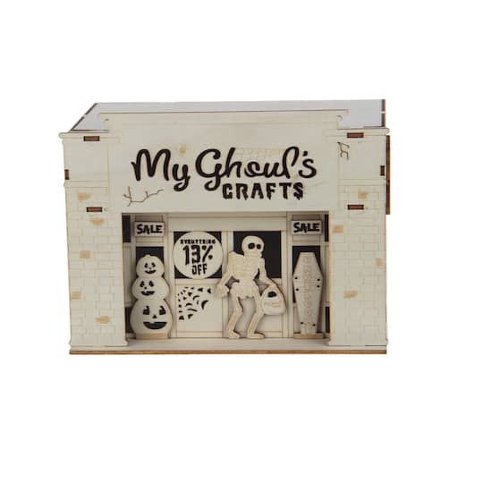 Buy the 6.75" DIY Village My Ghoul's Crafts LED Wood Decor by Make Market at Michaels. Custom design your own Halloween decor with this DIY wood village "My Ghoul's Crafts" with light-up, red LEDs. Pa…