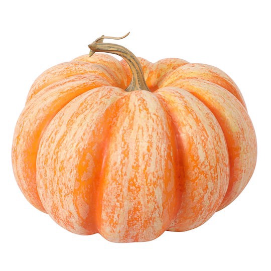 Find this 6.75" Orange & Cream Decorative Pumpkin by Ashland at Michaels. Orange and cream. 6.75" x 6.75" x 4" (17.1cm x 17.1cm x 10.2cm). Foam and plastic. For indoor use