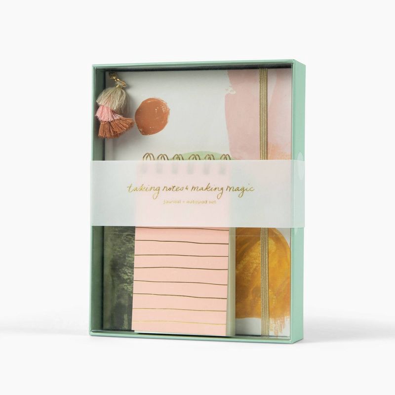- Give friends, family, or coworkers the very best with this abstract notepad and journal with gold foil tassel bookmark set
