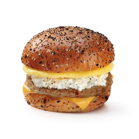 Fluffy soft potato bun topped with Everything Bagel Seasoning with sausage, eggs, and cheese with an Everything Bagel Seasoning Cream Cheese Spread Everything bagel seasoning is made of a mix of poppy…
