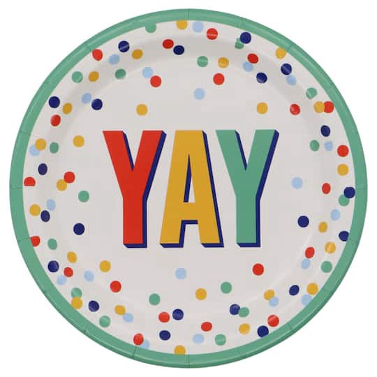 Find these 7" Multicolor Yay Snack Plates, 10ct. by Celebrate It at Michaels. Featuring a "YAY" message with colorful confetti dots, these disposable paper plates are great for celebrating birthdays, …