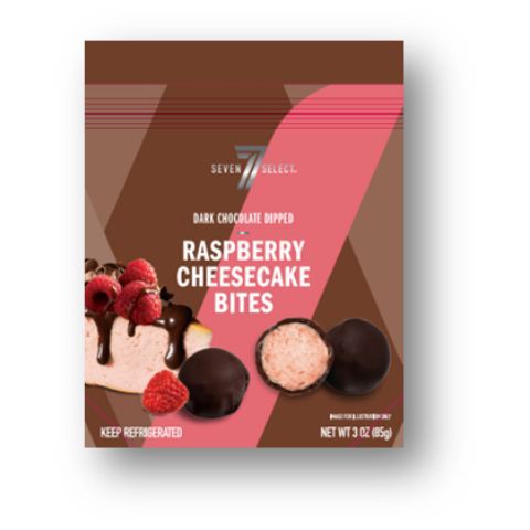 slide 1 of 1, 7-Select Desserts 7-Select Dark Chocolate Dipped Raspberry Cheesecake Bites, 3 oz