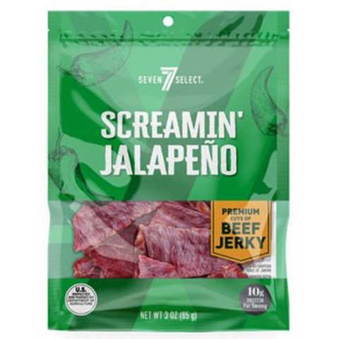 Enjoy 3 ounces of 7-Select's Delicious Jalapeno Beef Jerky!